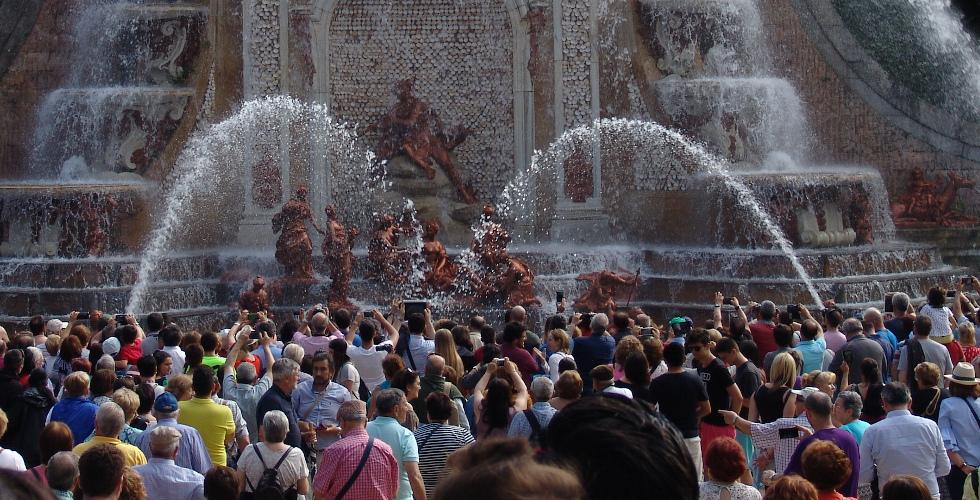 En total, se cuentan 29 fuentes con más de 300 surtidores de agua. Si todas funcionaran al mismo tiempo, consumirían un promedio de 9,000 metros cúbicos por hora, la misma cantidad que consume la ciudad de Segovia. El estanque principal se vaciaría en 13 horas, por lo que las fuentes nunca operan simultáneamente. Están programadas para activarse solamente en ocasiones cercanas a la presencia real. Algunas fuentes funcionan en verano, pero todas se encienden solo tres veces al año: el 30 de mayo, el día de San Fernando; el 25 de julio, día de Santiago; y el 25 de agosto, día de San Luis. Esto se debe a su deterioro potencial y a su alto consumo de agua.